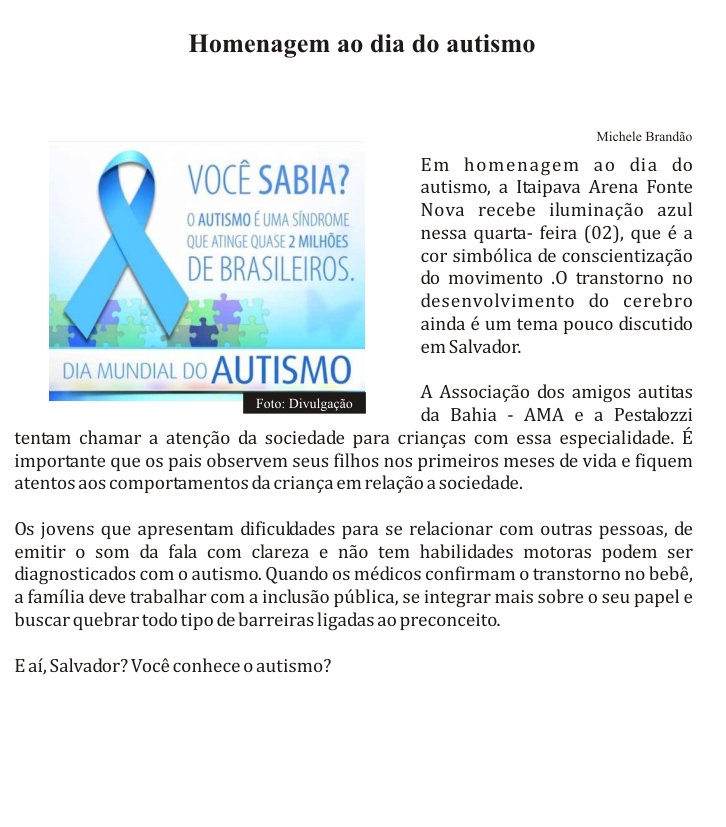 Homenagem ao dia do autismo