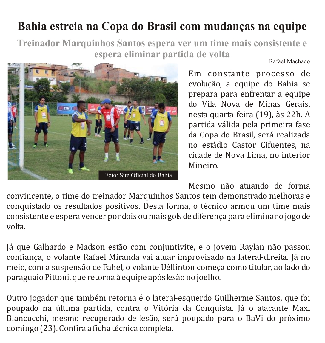 Bahia estreia na Copa do Brasil com mudanças na equipe